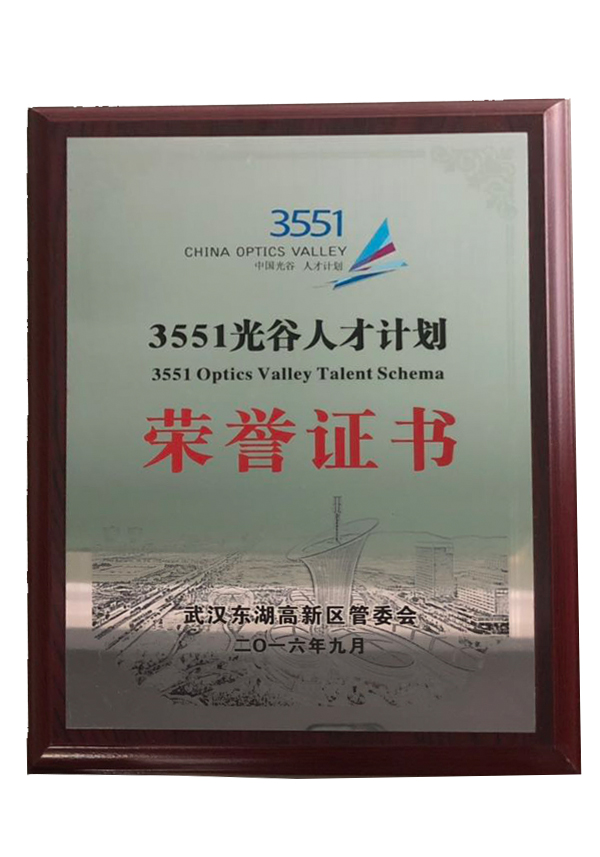 3551光谷人才計劃證書(2016年)