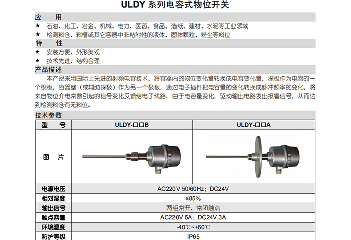 ULDY型電容式物位開(kāi)關(guān)